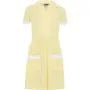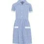 Button front corded gingham dress with contrast white trim on sleeves and pockets.