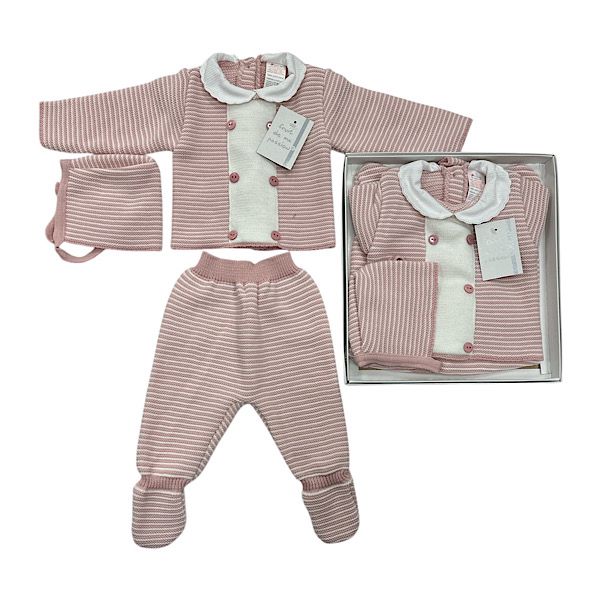 Knitted piece knitted baby set with all over poinsettia design on top.